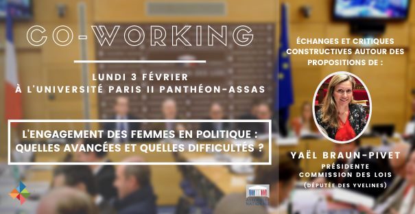 Le Co-Working consacrera un premier temps à la réflexion autour de la thématique, puis un second temps de débat avec un parlementaire. Les idées qui en découleront seront rédigées dans un rapport présenté en commission.