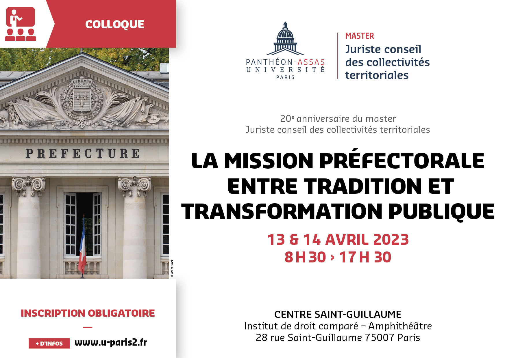 A l'occasion de son 20ème anniversaire, le Master Juriste Conseil des collectivités territoriales organise un colloque sur le thème « La mission préfectorale entre tradition et transformation publique » les 13 et 14 avril.