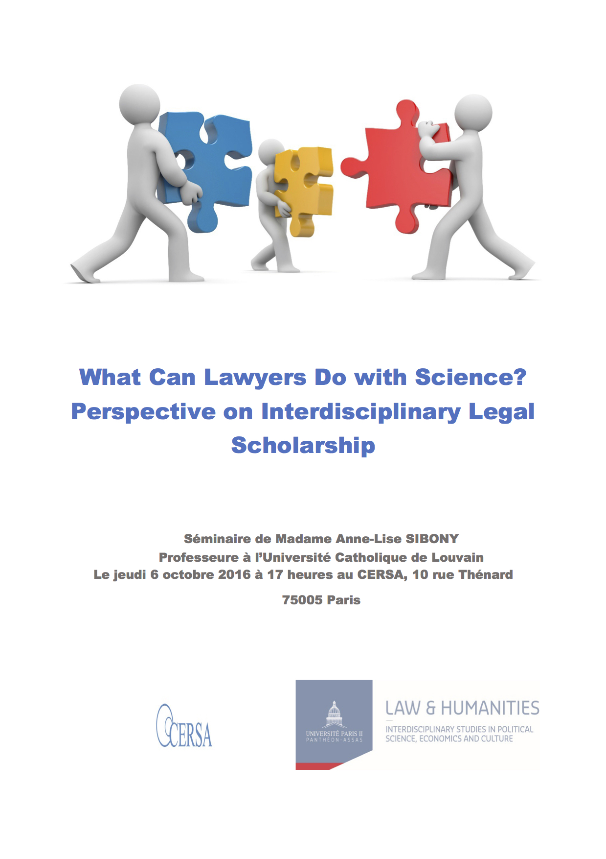 "What Can Lawyers Do with Science? Perspective on Interdisciplinary Legal Scholarship", par Anne-Lise Sibony, organisé par l'équipe de recherche Law & Humanities (membre du CERSA)