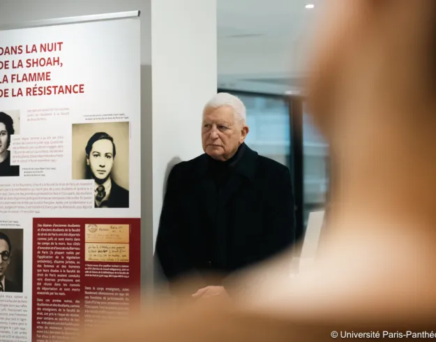 Le 3 octobre 1940, la législation antisémite du régime de Vichy s’applique à la faculté de droit. Professeurs et étudiants voient leurs parcours interrompus : ils sont exclus, parfois arrêtés, déportés ou assassinés. Parmi ces victimes figurent cinq professeurs : William OUALID, Albert AFTALION, René CASSIN, Henri LÉVY-BRUHL et Roger PICARD. À leurs côtés, des étudiants, Jacques-André BRACK, licencié en droit, Volico LEIZEROWSKI, inscrit à la faculté de droit, et Louise MAYER, diplômée d’une licence de droit. Certains ne reviendront jamais. Bernard VALLUIS, le petit-fils de l’un des professeur exclus, William OUALID, était présent lors de l’inauguration de l'exposition. Il a contribué à l'enrichir en fournissant des pièces qui appartenaient à son aïeul. Il estime que cet hommage est « tardif mais a le mérite d’exister aujourd’hui ».