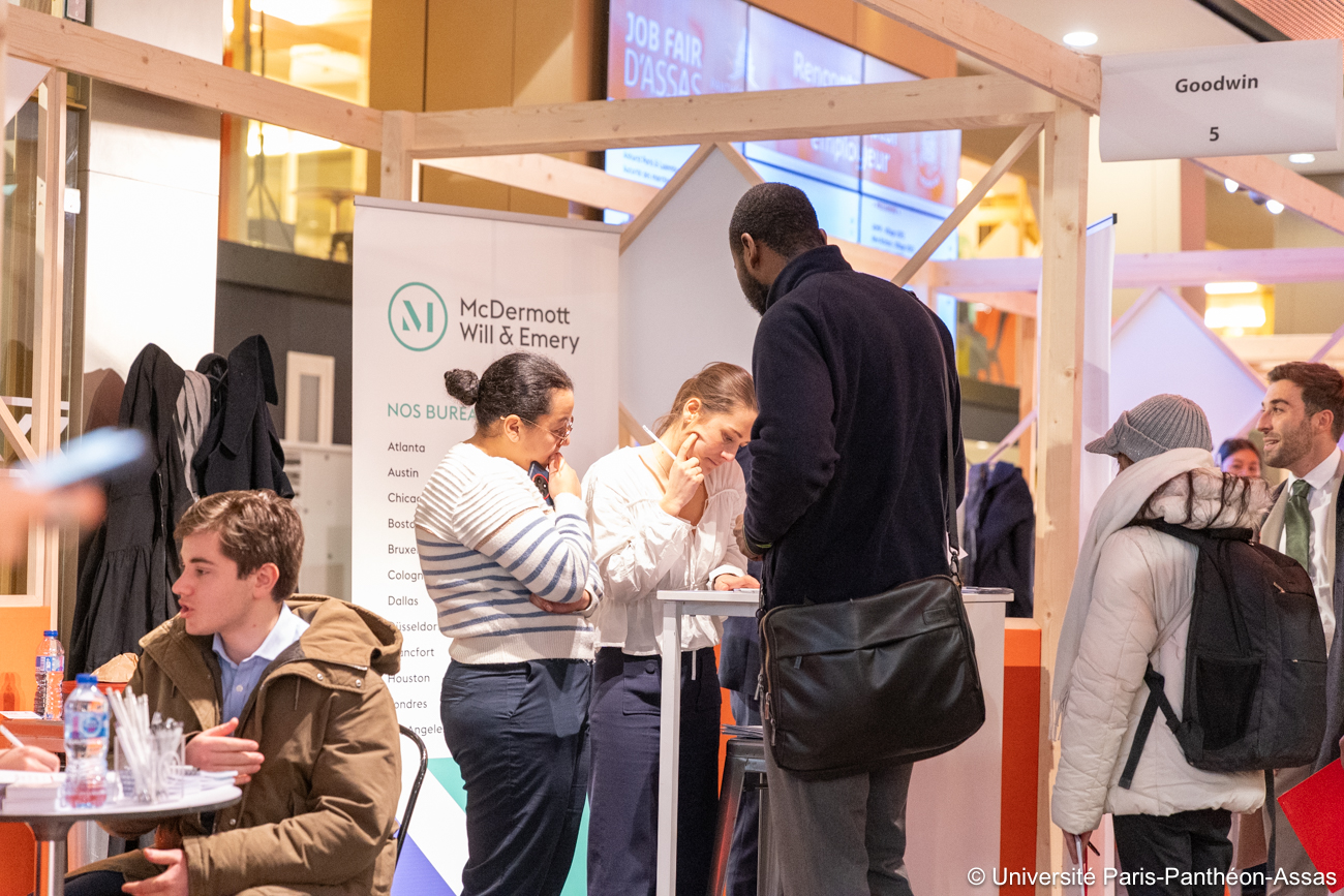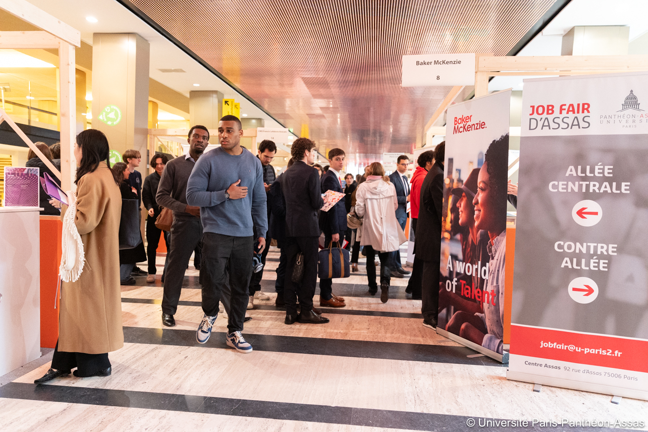Organisée par la Mission orientation-emploi de l'université et animée par une vingtaine d'étudiants ambassadeurs, la Job Fair d'Assas constitue un rendez-vous incontournable pour les étudiants et jeunes diplômés souhaitant s'orienter vers les métiers du droit, de la science politique, de l'économie, de la gestion, ainsi que de l'information et de la communication.