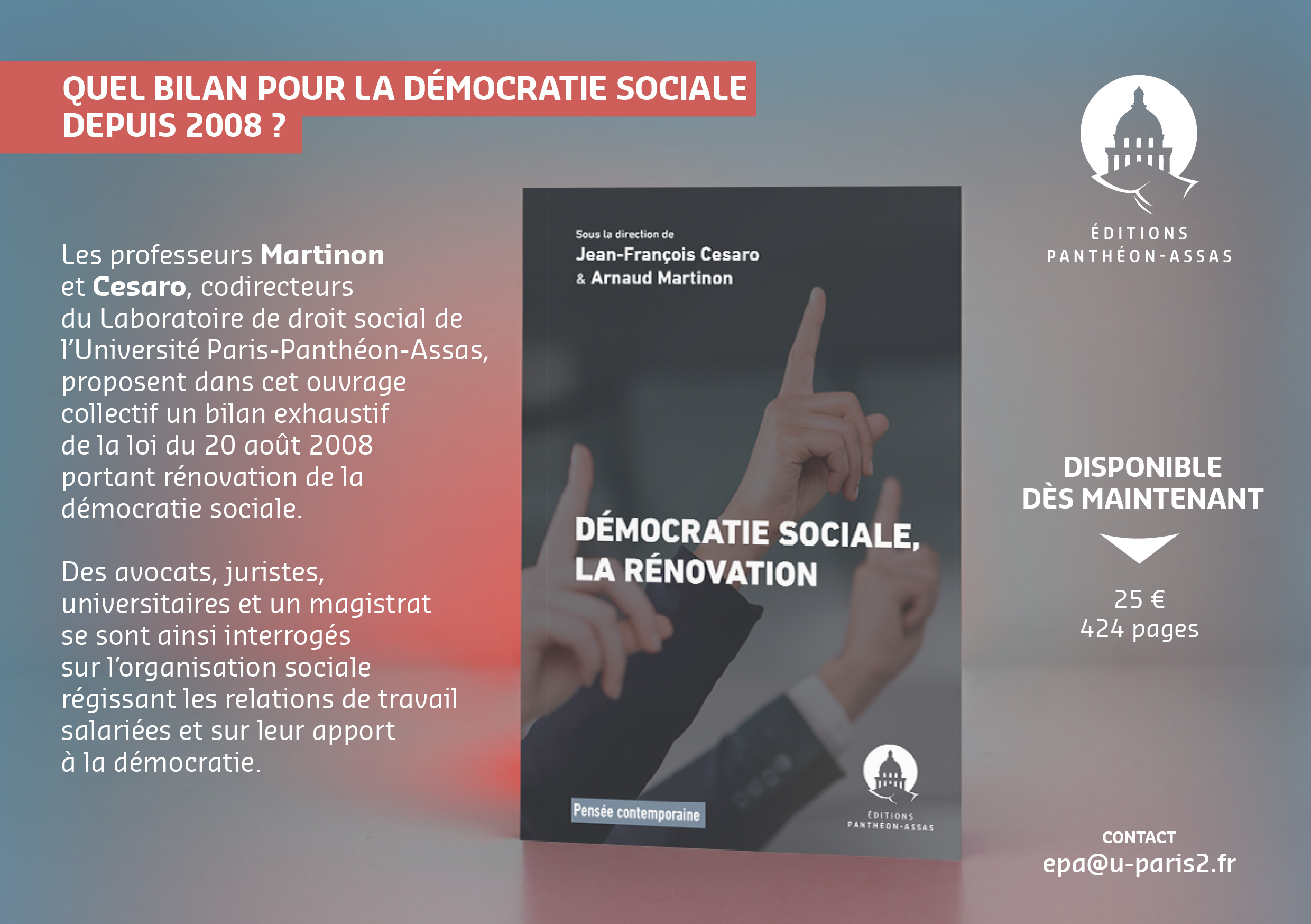 Textes rassemblés par les professeurs en droit privé Jean-François CESARO et Arnaud MARTINON, codirecteurs du Laboratoire de droit social à l'Université Paris-Panthéon-Assas.