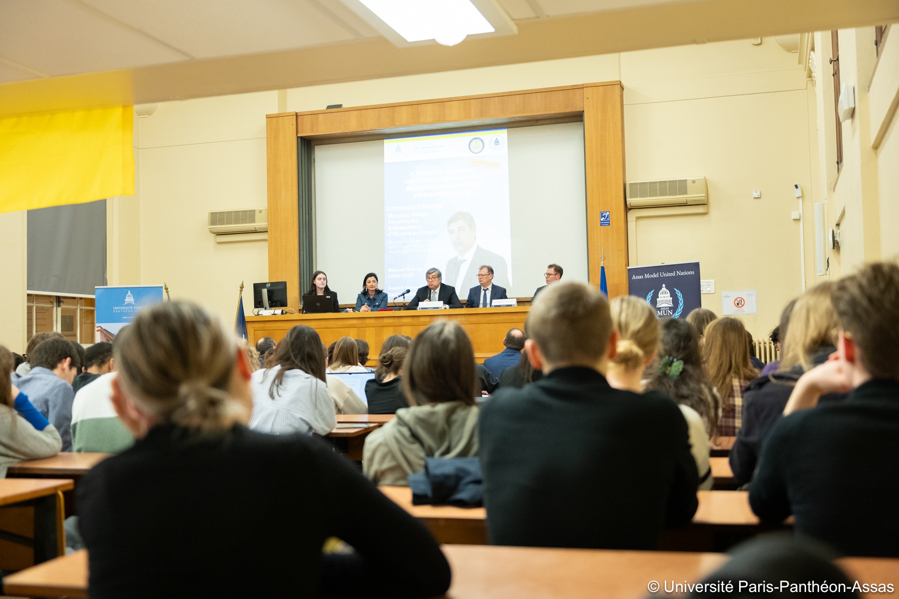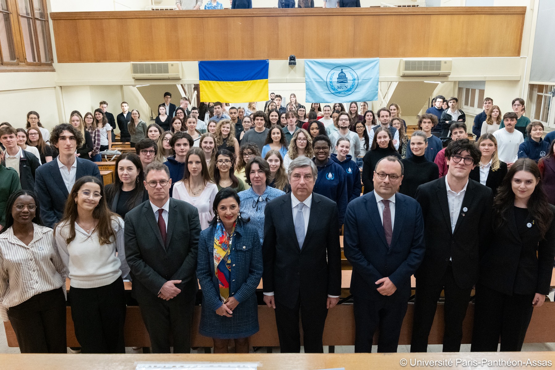 Près de quatre ans après l'invasion de l'Ukraine par la Russie, le 24 février 2022, le centre Thucydide et l'association étudiante Assas Model United Nations avec le concours de Quentin EPRON, vice-président en charge de la vie étudiante, ont organisé la conférence « Quatre ans de guerre contre l’Ukraine : répercussions et perspectives » avec comme invité son Excellence Vadym OMELCHENKO, ambassadeur d'Ukraine en France.